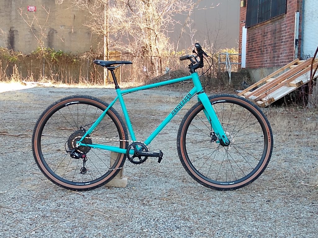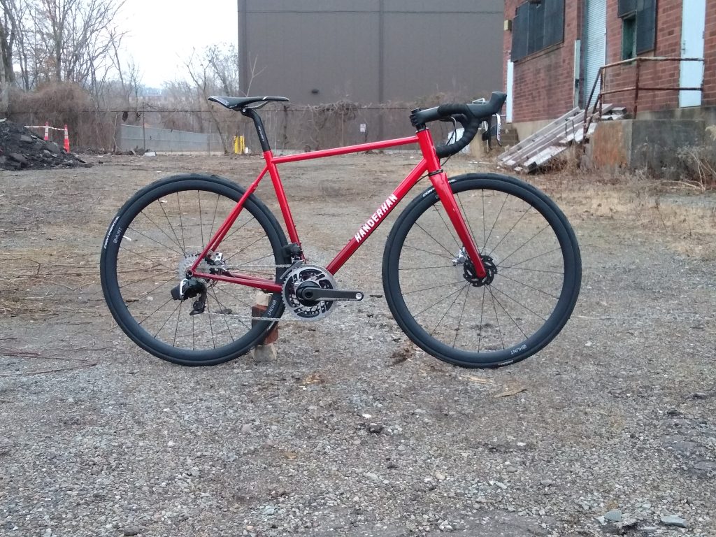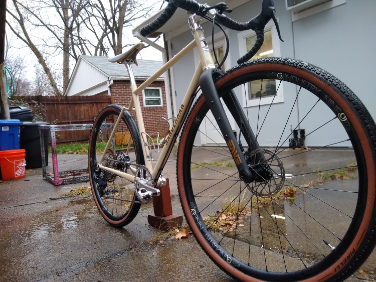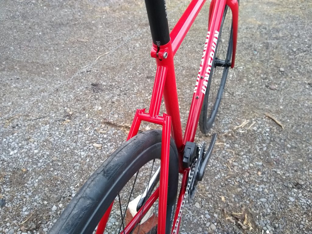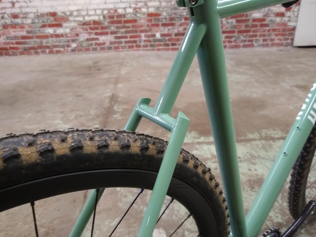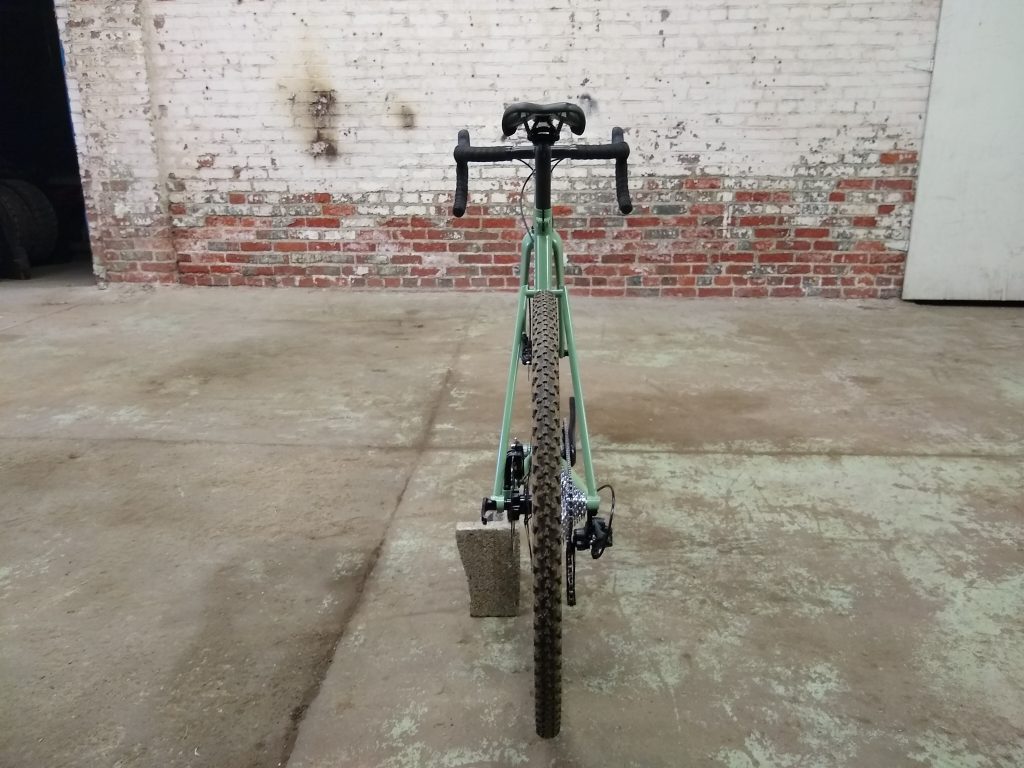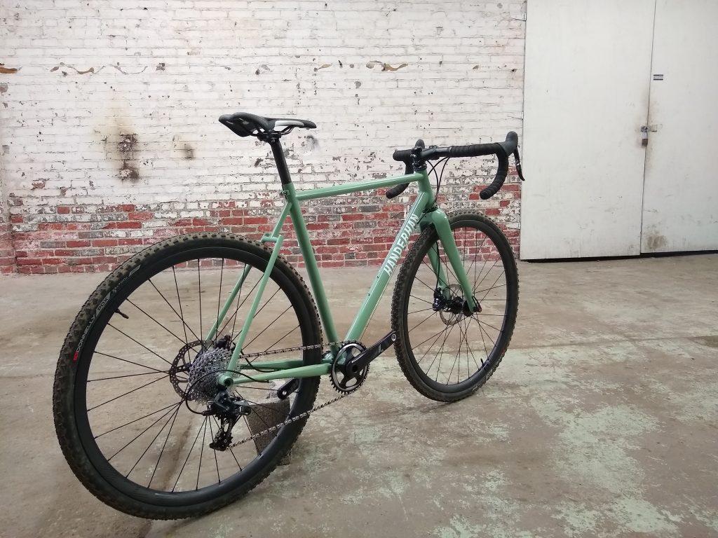 “Road” bike designed around 32mm slicks with room for 40mm knobbies. Designed for long days of road and/or gravel riding.