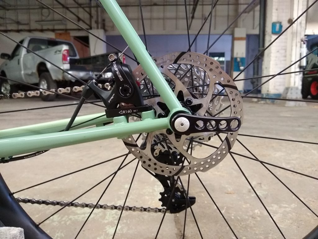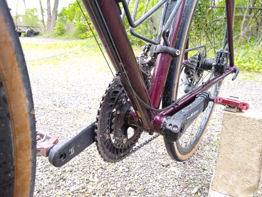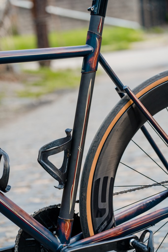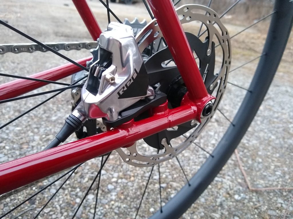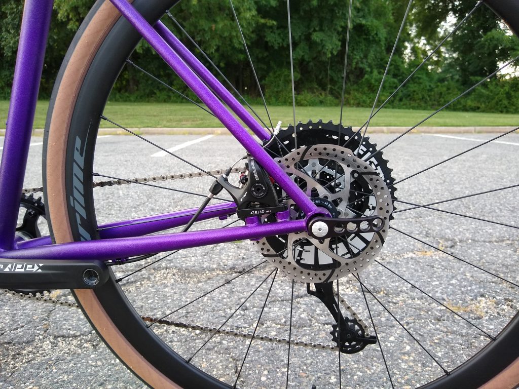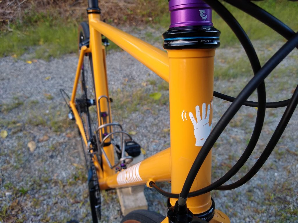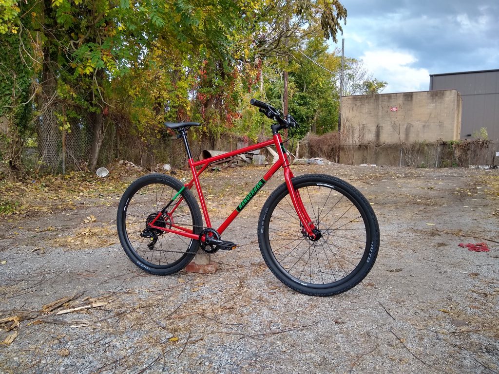 “Road” bike designed around 32mm slicks with room for 40mm knobbies. Designed for long days of road and/or gravel riding.