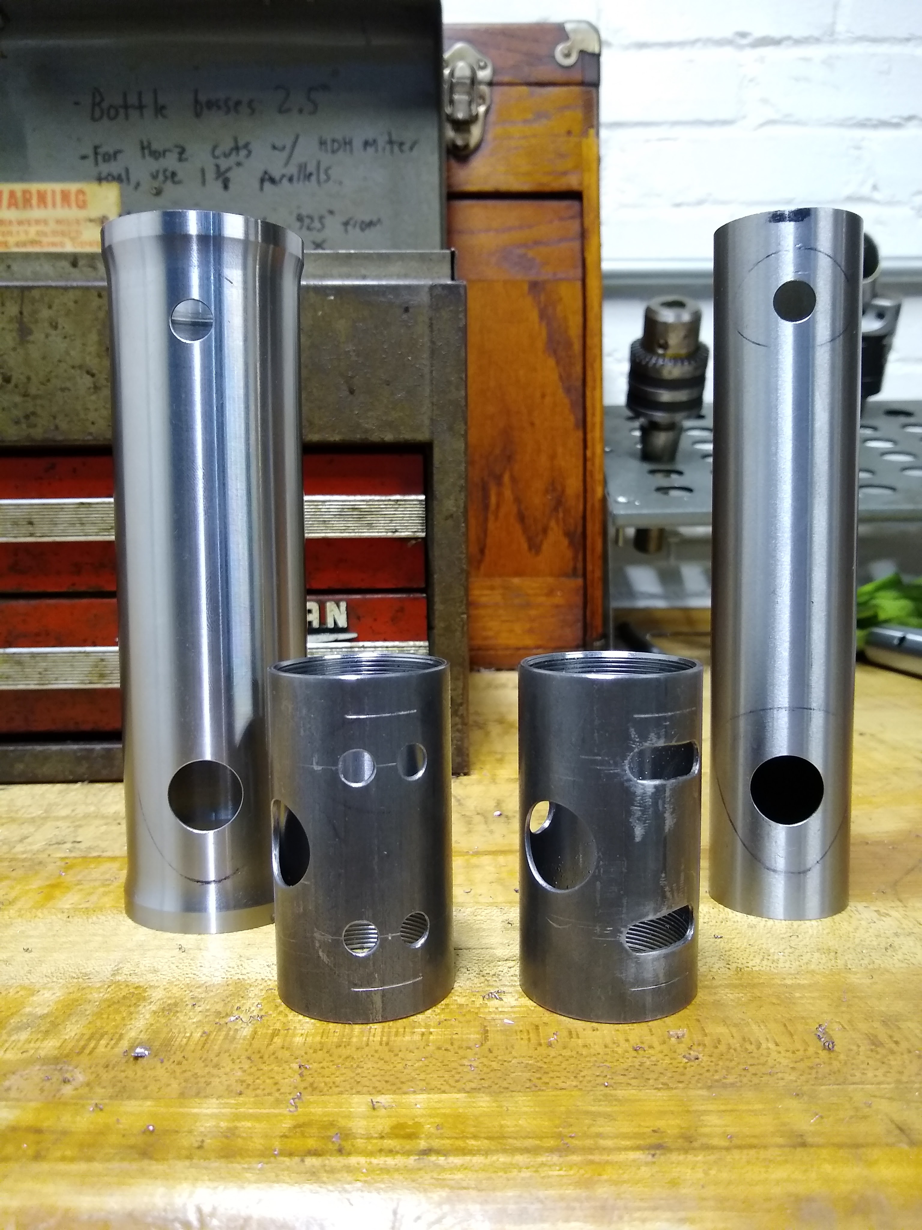 Miter seat tube, top tube, and down tube and drill water bottle boss holes