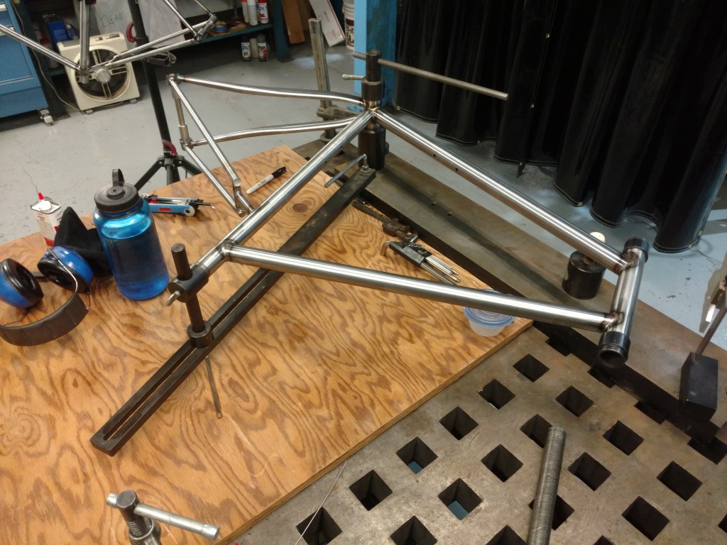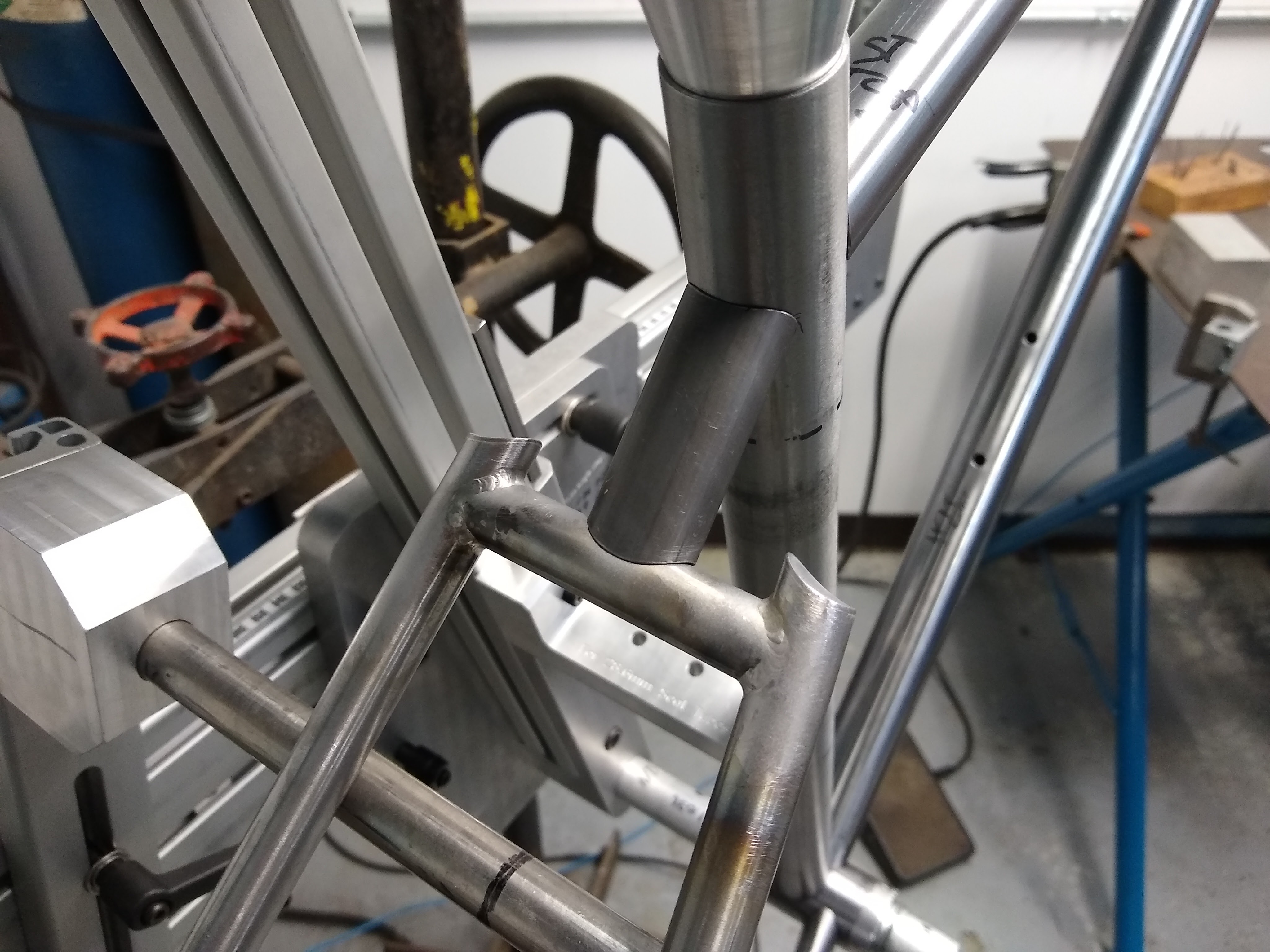 Hardtail 29er in my frame fixture about to be tacked togetherSeat stays about to be tacked into place