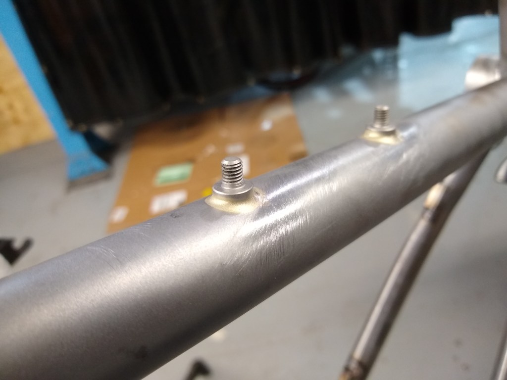 Add all the bits and bobs. Brake mounts, water bottle bosses, fender mounts, cable guides, rack mounts, seat post clamp, etc.